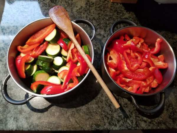 Ingredients: long grain white rice, ground beef (grass fed, organic, 90% lean, 10% fat), vegetables (green zucchini, acorn squash, red bell peppers, green sweet peas, cauliflower), sunflower oil, bone meal powder, vitamin & essential minerals mix, Morton lite salt (for potassium supplement), pink Himalayan salt (to supplement microelements).