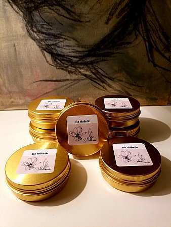 Ingredients: cistus incanus, urtica dioica (nettle leaf), centella asiatica (brahmi/gotu kola), ocimum sanctum (tulsi), castor oil, sesame oil, organic white beeswax, holy basil tulsi essential oil, lavender essential oil.